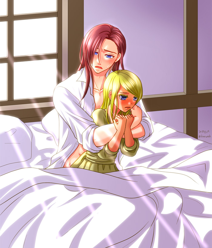 初めての朝 2018年9月15日2023年3月21日ワーネバ 夫婦として迎えた初めての朝、という感じで描きました! 若干大人向けなのでご注意! シーン的には↓ ホージ「ごめん、僕……全然余裕なくなっちゃって…身体とか、大丈夫?」 アサンタ「……うん、平気」